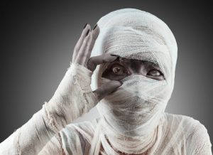 Gör en mer ”ekonomivänlig” insats och klä ut dig till mumie! Detta ger en cool effekt, samtidigt som det inte är alltför svårt. Du kan lätt genom lite bandage/toapapper förvandla dig till denna skapelse. Se videon här nedan för mer inspiration!
