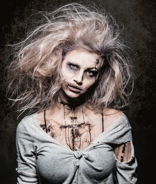 Med hjälp av tillrufsat hår, slitna kläder och fakeblod får du till en läskig zombielook. Jag gillar denna look då bredden av vad man skulle kunna göra är väldigt stor, du skulle exempelvis kunna vara en ”doktor zombie”, ”skolflicka zombie” eller nått helt annat, bara din egen fantasi kan hindra dig. Se videon nedan för flera tips!