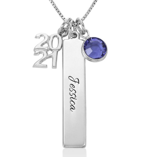 Ett vackert smycke med möjlighet att gravera in namnet på studenten tillsammans med avgångsåret. Snyggt och personligt